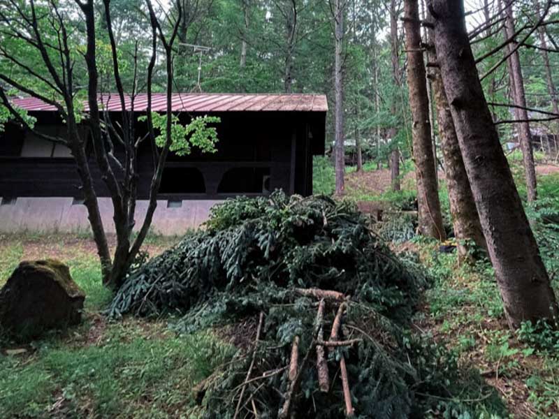 作業は1日で無事完了。今回は、伐採と処分を全てご依頼があったため、枝はチッパー機にかけるため軽トラックで土場まで搬送。幹はその場で玉切りし針葉樹薪を必要としているお客様に向けて薪として回収させていただきました。